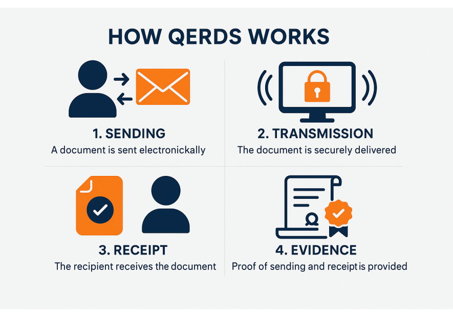 Kwalifikowana Usługa Rejestrowanego Doręczenia Elektronicznego, znana jako e-Doręczenia (ang. Q-Delivery), nosi oficjalną nazwę QERDS – skrót od Qualified Electronic Registered Delivery Service.
